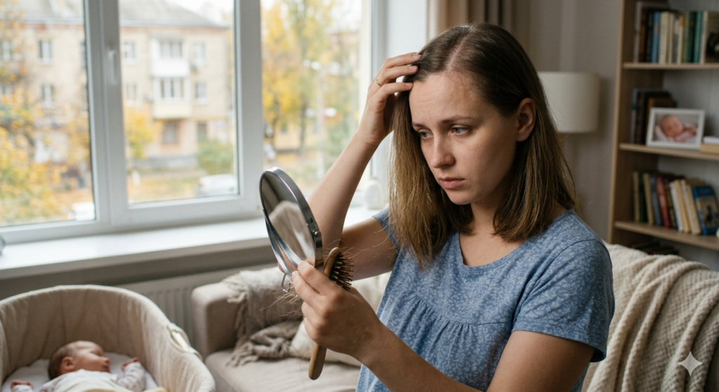 Післяпологове випадіння волосся найчастіше є нормальним тимчасовим явищем, яке належить до postpartum telogen effluvium — різновиду дифузного надмірного “осипання” волосся після гормональної перебудови організму. Під час вагітності частина жінок помічає, що волосся стає густішим, бо нормальне щоденне випадіння певною мірою пригнічується; після пологів цей ефект зникає, і волосся починає активніше випадати, фактично повертаючись до свого […]