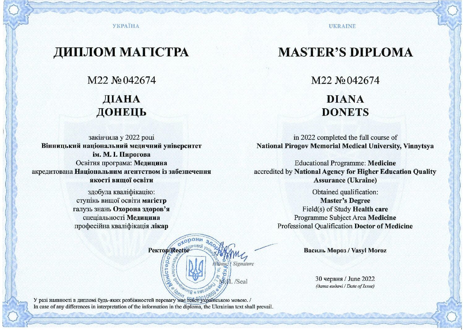 • Вінницький національний медичний університет ім. М.І. Пирогова — Лікувальна справа (2022)