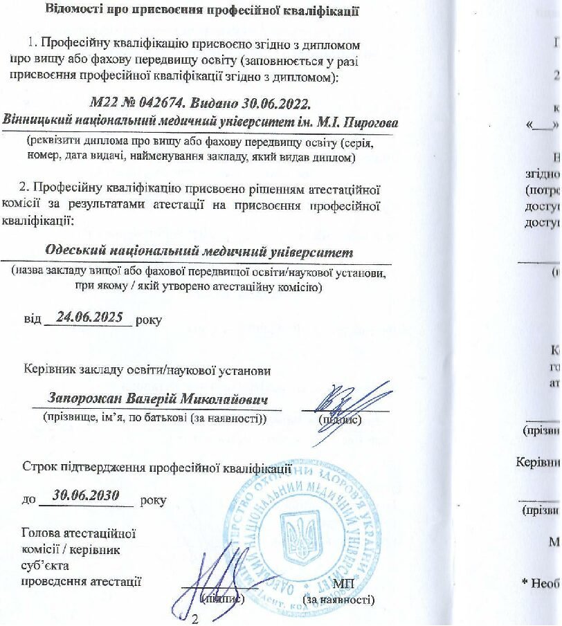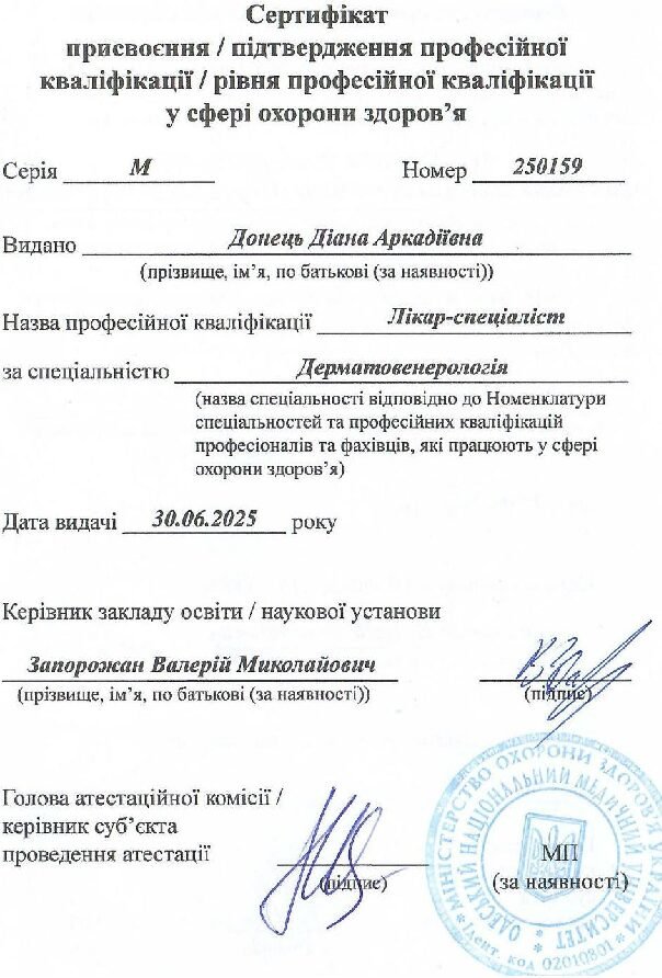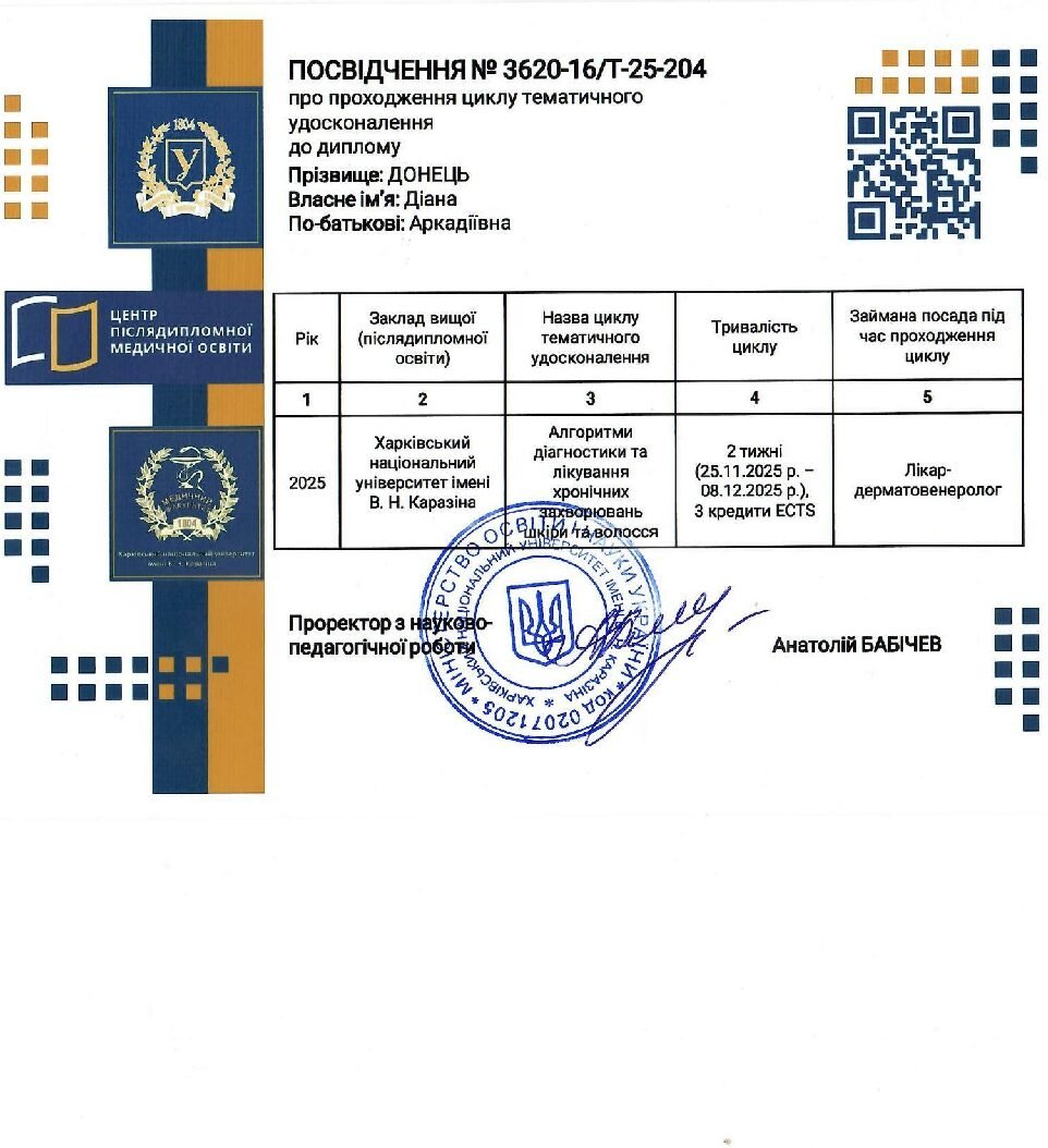 • Інтернатура з дерматовенерології (завершення 2025)