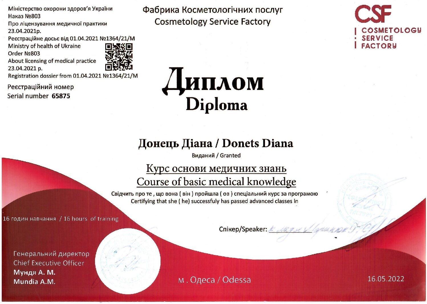 • Сертифікати з сучасних протоколів лікування та практичних ін’єкційних навичок